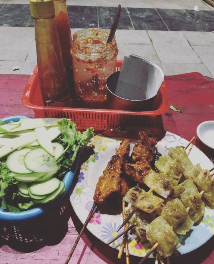 Thực tế, xỏ lòi mà người địa phương hay gọi gồm combo thịt xiên nướng, bò cuộn lá lốt và chả. Thịt xiên nướng và bò cuộn lá lốt chắc không còn quá xa lạ với nhiều người nhưng xiên chả thì khá đặc biệt.