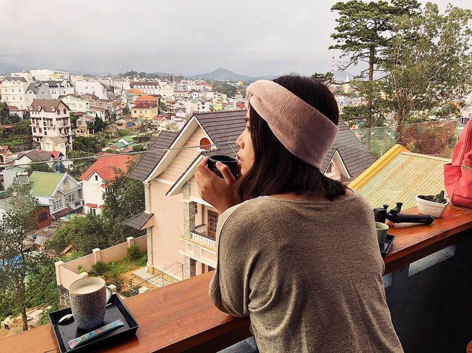 Up Coffee Dalat: Điểm cộng của Up Coffee Dalat là vị trí thuận tiện ngay khu vực trung tâm thành phố, nên bạn không cần phải đi quá xa để tìm một không gian cà phê đẹp, có tầm nhìn thoáng đãng. Qua lớp kính trong suốt, bạn có thể nhìn thấy các công trình kiến trúc như những mô hình thu nhỏ vừa quen thuộc, vừa lạ lẫm. Khung cảnh những dãy nhà nằm chênh vênh, chen chúc nhau đặc trưng của đô thị Đà Lạt hẳn sẽ mang đến background "sống ảo" cực chất. Ảnh: @ladii_nam.