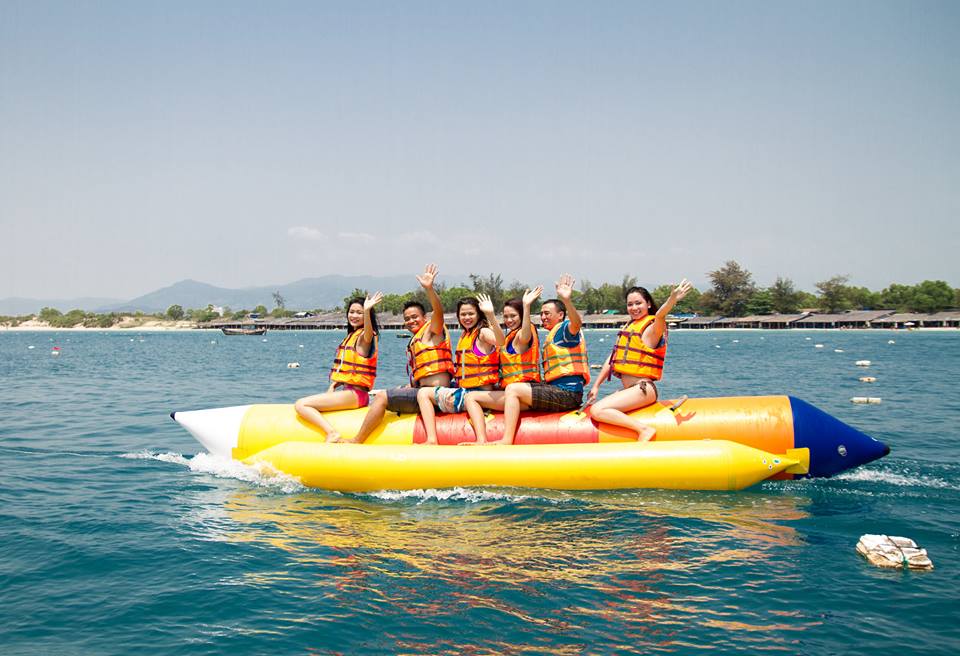 Tại đây, du khách sẽ được trải nghiệm các dịch vụ thể thao trên biển như dù bay, cưỡi mô tô nước, lướt ván. Ngoài ra, bạn còn có thể đi lặn biển ngắm san hô, đi phao chuối trên biển, xem các loài cá biển bằng thuyền thúng, lái mô tô dưới đáy biển.
