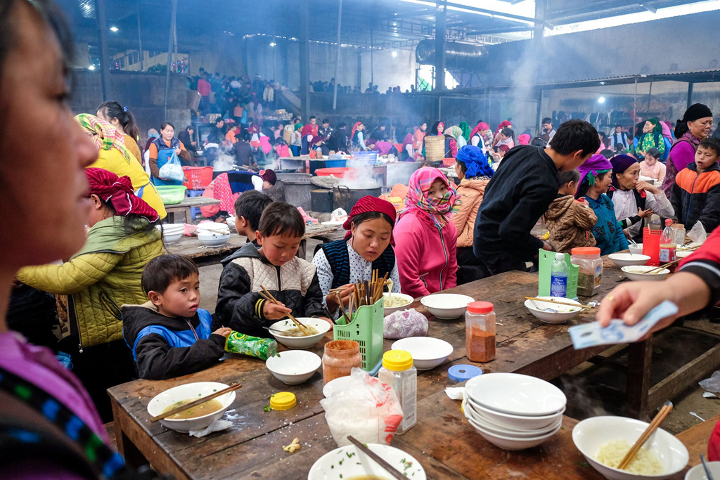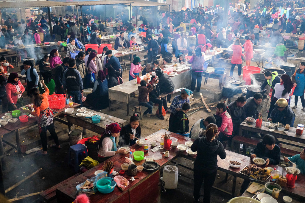 Chợ Mèo Vạc (Hà Giang) diễn ra vào chủ nhật hàng tuần. Năm mới, nếu có dịp tới đây, bạn đừng bỏ qua khu chợ xuân nằm ở chính giữa những dãy núi cao, nép mình bên vách núi đá và mây mù.