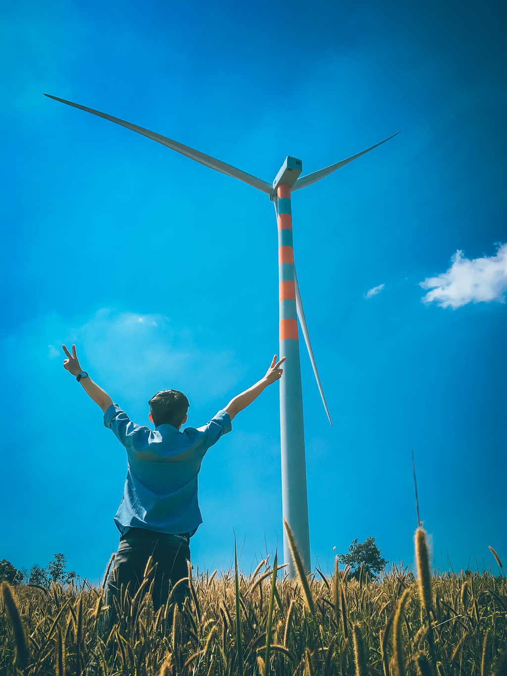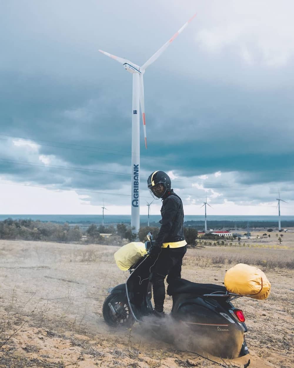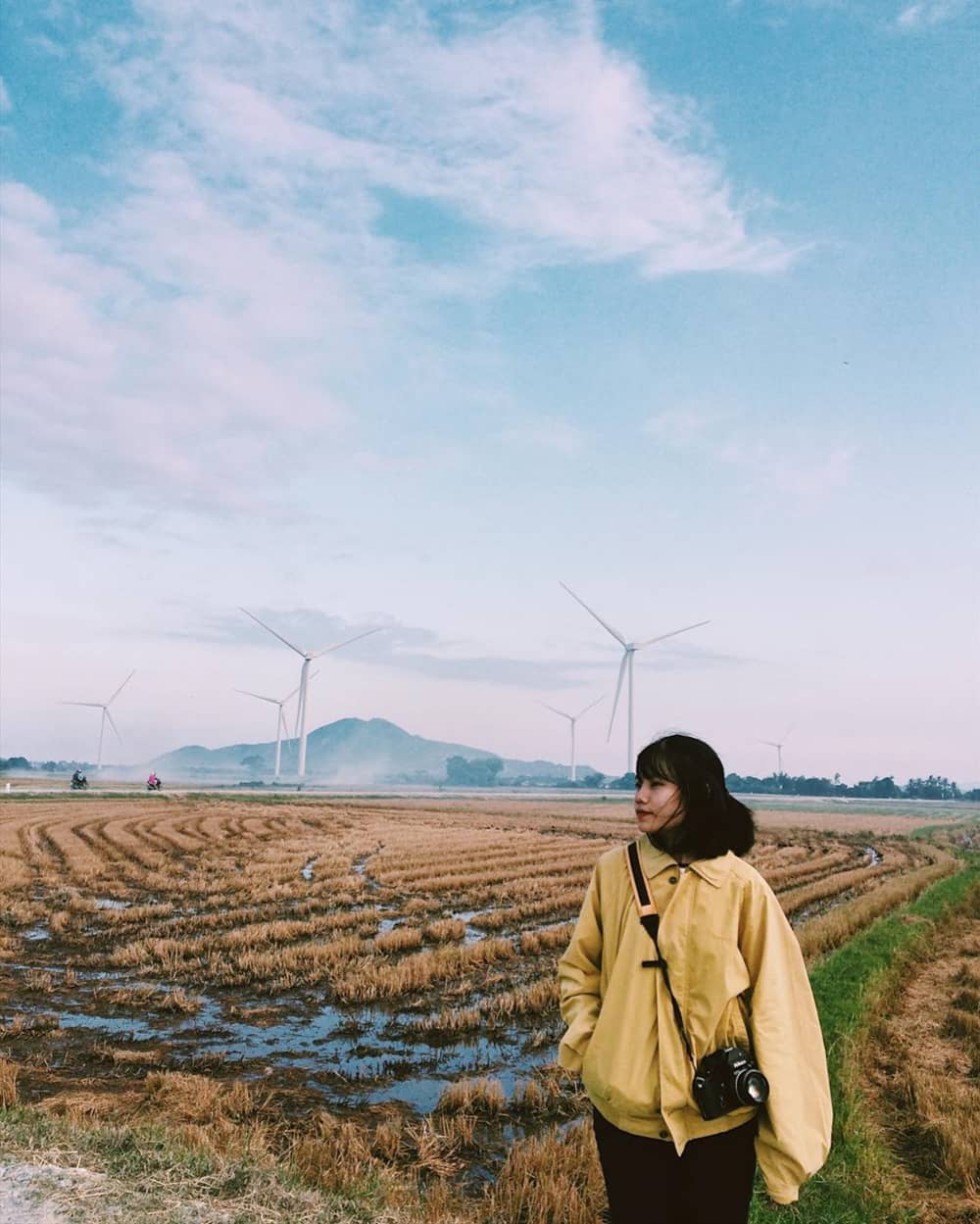 Nằm giữa đồng cỏ mênh mông, cảnh quan khoáng đạt, góc check-in đình đám ở Bình Thuận có không gian đẹp chẳng kém những cánh đồng quạt gió trời Tây. Nơi đây chứa những quạt gió khổng lồ cao khoảng 95 m, cánh sải rộng tới gần 50 m. Ảnh: yzy_1998.