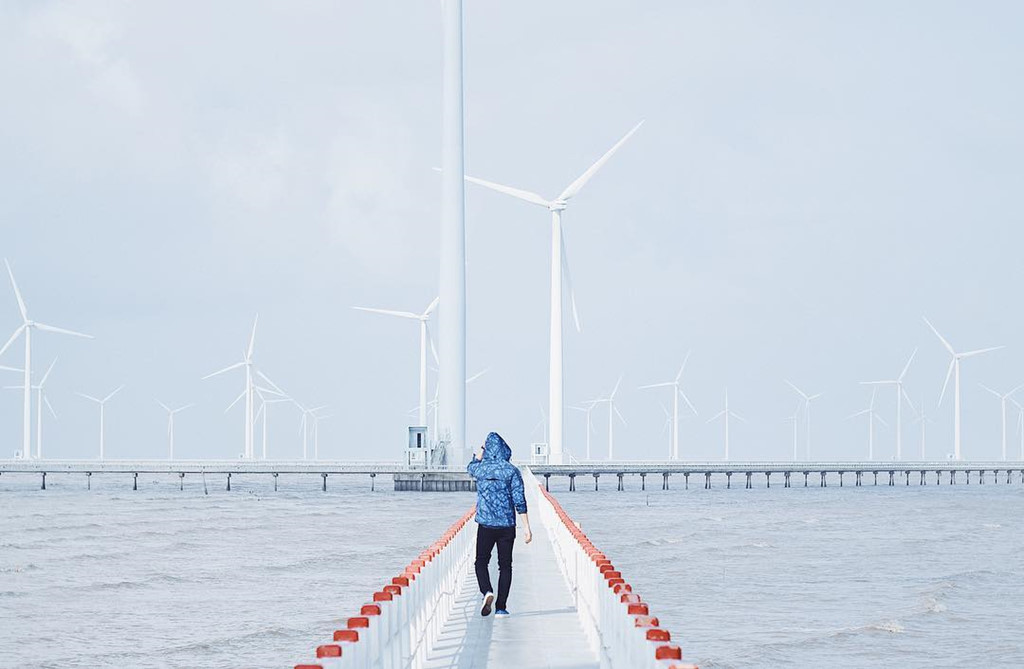 Công trình điện gió ở Bạc Liêu là dự án điện gió đầu tiên ở Đông Nam Á được xây dựng trên thềm lục địa với 62 trụ tua bin bên bờ biển. Với quang cảnh hùng vĩ, cánh đồng điện gió Bạc Liêu nhanh chóng thu hút giới trẻ, thành điểm "sống ảo" đẹp tựa trời Âu ở miền Tây. Để tham quan và chụp hình tại đây, du khách phải mua vé vào cửa với giá 20.000 đồng/người. Ảnh: Silentb_.