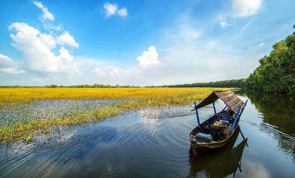 Làng nổi Tân Lập: Khu rừng tràm nguyên sinh rộng lớn này thuộc huyện Mộc Hóa, tỉnh Long An và cách TP.HCM khoảng 100 km. Làng nổi Tân Lập cũng gần với biên giới Campuchia. Vào mùa nước nổi, khách du lịch thường chọn ngồi trên những chiếc xuồng ba lá để khám phá khắp ngóc ngách. Đây cũng là mùa bạn có thể nhìn thấy sen nở rất đẹp trên mặt nước.
