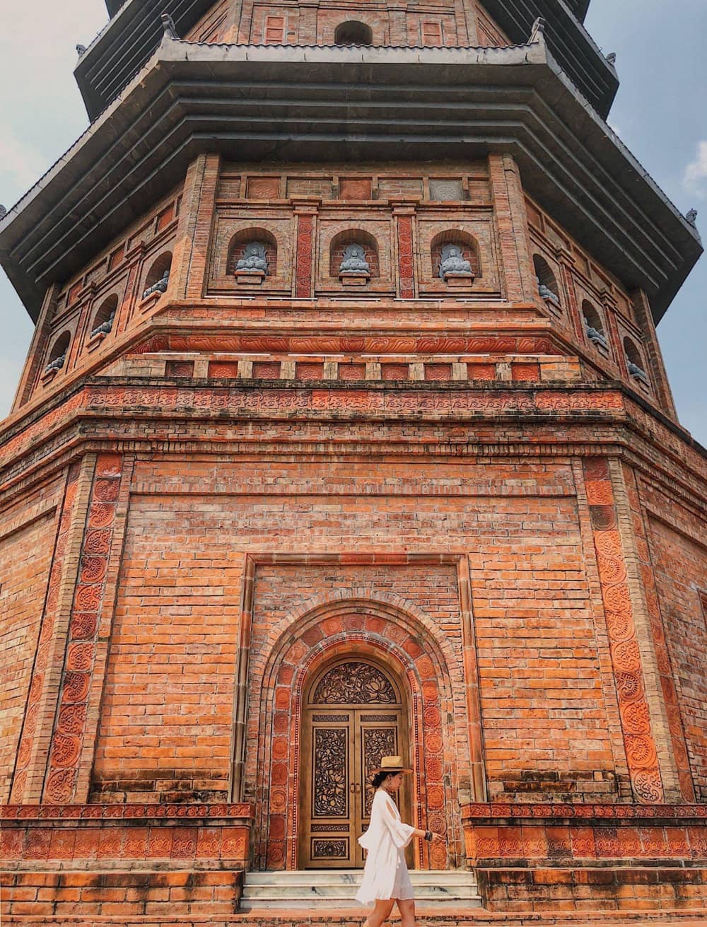 Chùa được xây dựng theo lối kiến trúc tầng lầu xếp chồng lên nhau, với màu xanh, đỏ nổi bật. Đến đây, du khách sẽ có cảm giác như lạc vào xứ sở phù tang với nhiều góc sống ảo thần thánh, tuyệt đẹp. Ảnh: @anhthuphamv, @ttinhh_,.