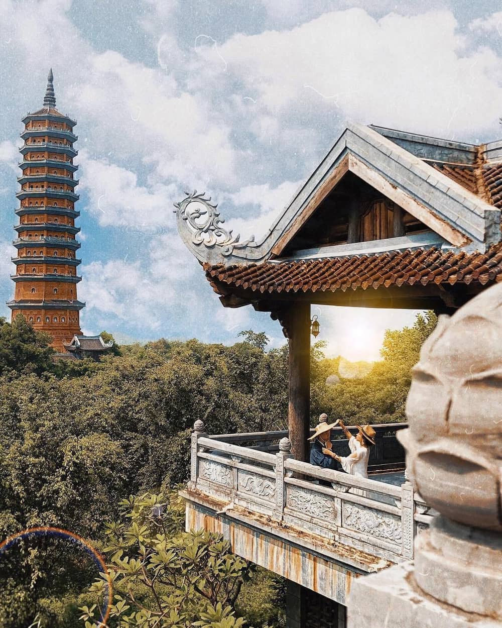 Chùa Bái Đính (Ninh Bình): Là ngôi chùa lớn và sở hữu nhiều kỷ lục nhất ở Việt Nam, chùa Bái Đính nằm trên sườn núi, giữa thung lũng mênh mông hồ và núi đá ở cửa ngõ phía Tây vào cố đô Hoa Lư. Kiến trúc chùa mới hoành tráng, đồ sộ mang đậm màu sắc Nhật Bản với nhiều công trình như bảo tháp xá lợi, cổng chùa, hành lang... Chính vì vậy, nơi đây đã trở thành điểm đến nổi tiếng nhất nhì Ninh Bình và miền Bắc. Ảnh: @monsimi, @lehatruc.