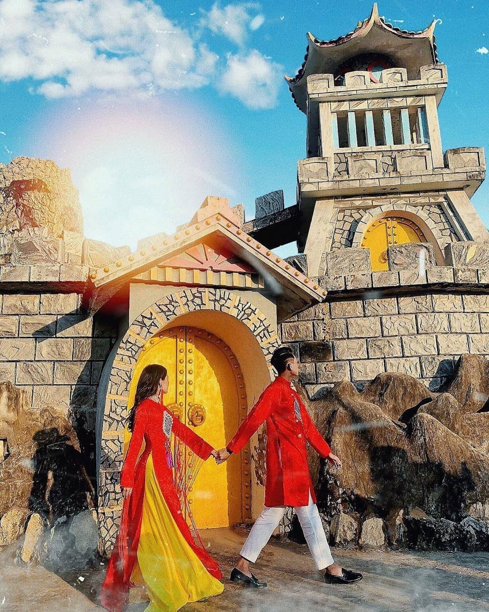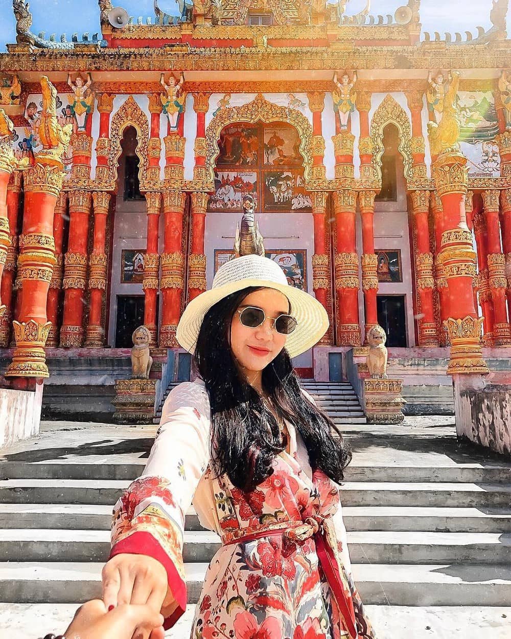 Màu sắc sặc sỡ cùng những họa tiết trang trí được điêu khắc, mạ vàng tỉ mỉ của không gian bên trong sẽ khiến bạn thấy ngỡ ngàng trước sự nguy nga tráng lệ nơi đây. Chỉ cần mặc trang phục nổi bật và tạo dáng phù hợp, bạn đã có ngay một bộ ảnh đậm chất Á Đông giống hệt những tấm ảnh được chụp trong các ngôi chùa cổ ở Indonesia, Thái Lan... Ảnh: chiithanh, ttn.me96.
