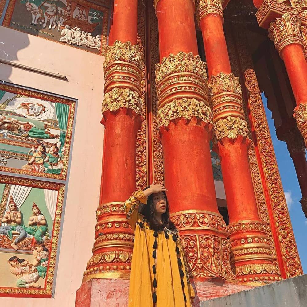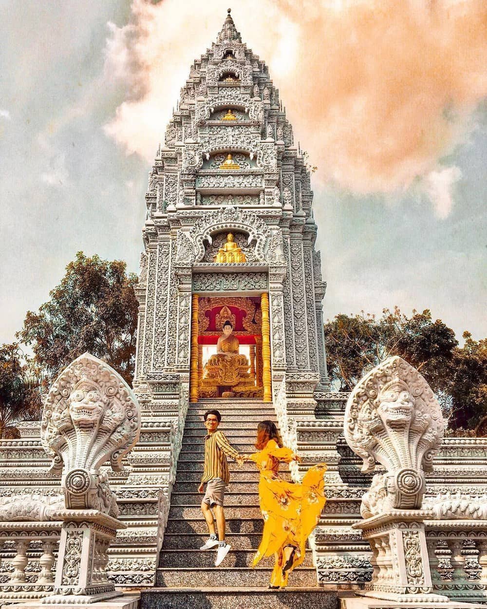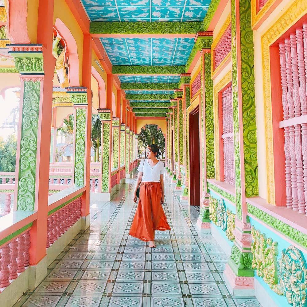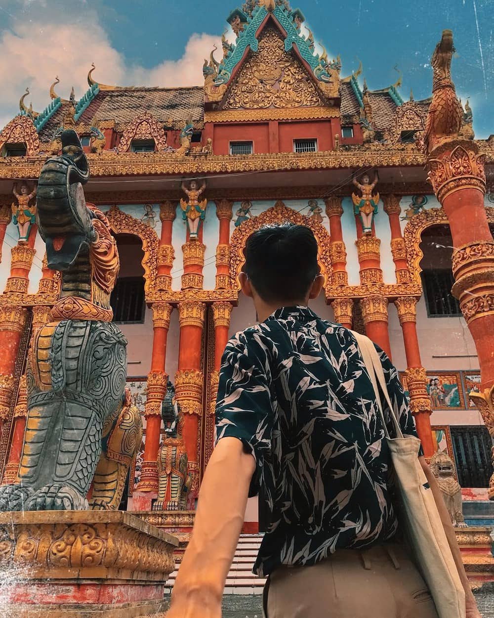 Chùa Som Rong (Sóc Trăng): Ngôi chùa mang đậm dấu ấn kiến trúc Khmer này có tên đầy đủ là Wat Pătum Wôngsa Som Rông. Nơi đây chính thức hoàn thành vào năm 2017 và nhanh chóng trở thành một trong những điểm tham quan nổi tiếng nhất của tỉnh Sóc Trăng. Điều đầu tiên gây ấn tượng với du khách khi vừa đặt chân vào khu vực cổng chào là 5 ngọn tháp lộng lẫy được đặt ngay trên các mái chùa. Ảnh: dungcee, vanvan.littlest.things.