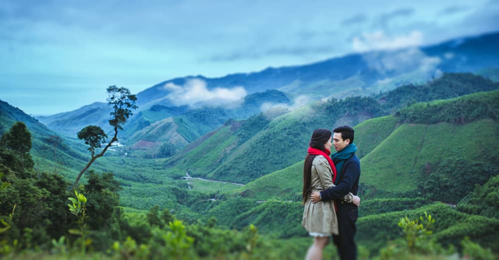 Đồi chè Mộc Châu (Sơn La): Mộc Châu nổi tiếng với nhiều đồi chè xanh ngút ngàn. Trong đó, đồi chè trái tim là địa điểm được giới trẻ check-in nhiều nhất. Mùa chè ở Mộc Châu thường bắt đầu từ tháng 2 đến tháng 11. Đến đây, du khách sẽ được đắm mình trong sắc xanh của những đồi chè uốn lượn, tận hưởng không gian trong lành với mùi chè thơm mát. Đặc biệt, bạn sẽ có cơ hội diện lên mình những bộ đồ tuyệt đẹp y hệt các cô gái dân tộc vùng bản.