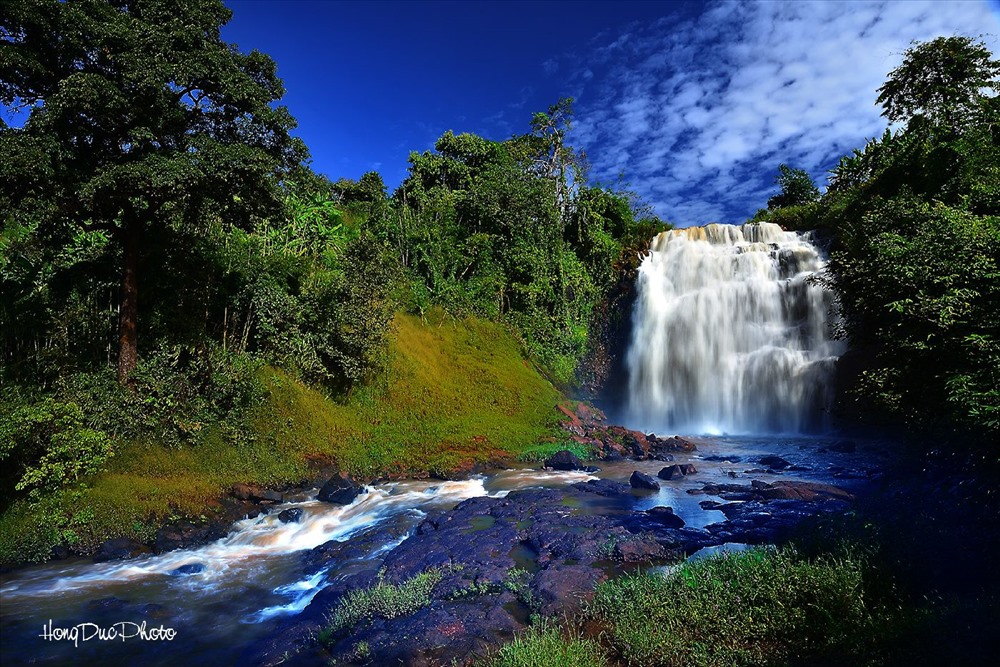 Tên gọi là cách mà những người từng ghé qua đây đặt cho dòng thác này sau khi nhìn ngắm vẻ uốn lượn qua chín tầng đá của nó. Không đổ xuống từ một vách đá chọc trời, thác Chín tầng trải dài qua những vách đá gồ ghề, mỗi tầng cao từ 5-10m, riêng tầng cuối cùng cao 15m. Thác nằm sâu trong núi nên hơi khó tìm đường, thuộc địa phận của xã Iasao, huyện Iagrai, cách trung tâm TP.Pleiku 30km. Ảnh: gialai.gov