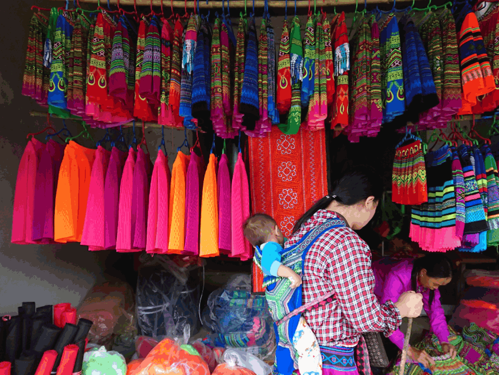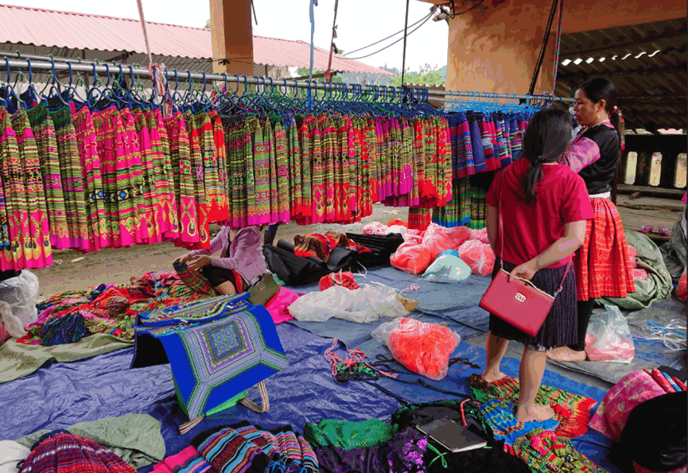 Tại đây, du khách có thể tùy ý lựa chọn những sản phẩm thổ cẩm, hoa mắt với những sắc màu rực rỡ của váy áo các thiếu nữ dân tộc. Khách du lịch thường sẽ trầm trồ trước những món hàng được dệt thủ công với những họa tiết sinh động, màu sắc hài hòa và đẹp mắt.