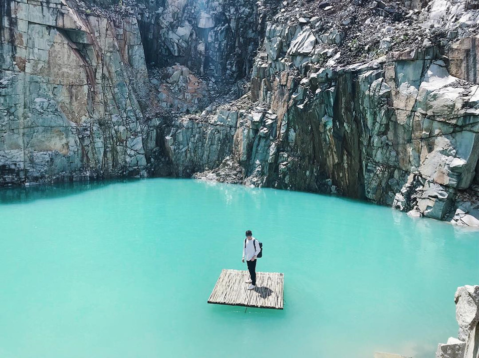 Xung quanh hồ nước là những vách đá dựng đứng uy nghi. Màu nước đặc biệt ở đây chính là điều khiến nhiều người có cảm giác như đang lạc ở Tuyệt Tình Cốc trong những bộ truyện kiếm hiệp của tác giả Kim Dung. Ảnh: @tran.nt11, @ngth_nhi.