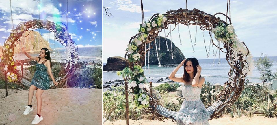 Không chỉ có cảnh sắc thiên nhiên hữu tình, Hòn Yến còn chiều lòng du khách khi bố trí nhiều góc sống ảo thần thánh cho giới trẻ như nấc thang, xích đu vòng hoa... Ảnh: _____vi.vi_____, may_lt42.