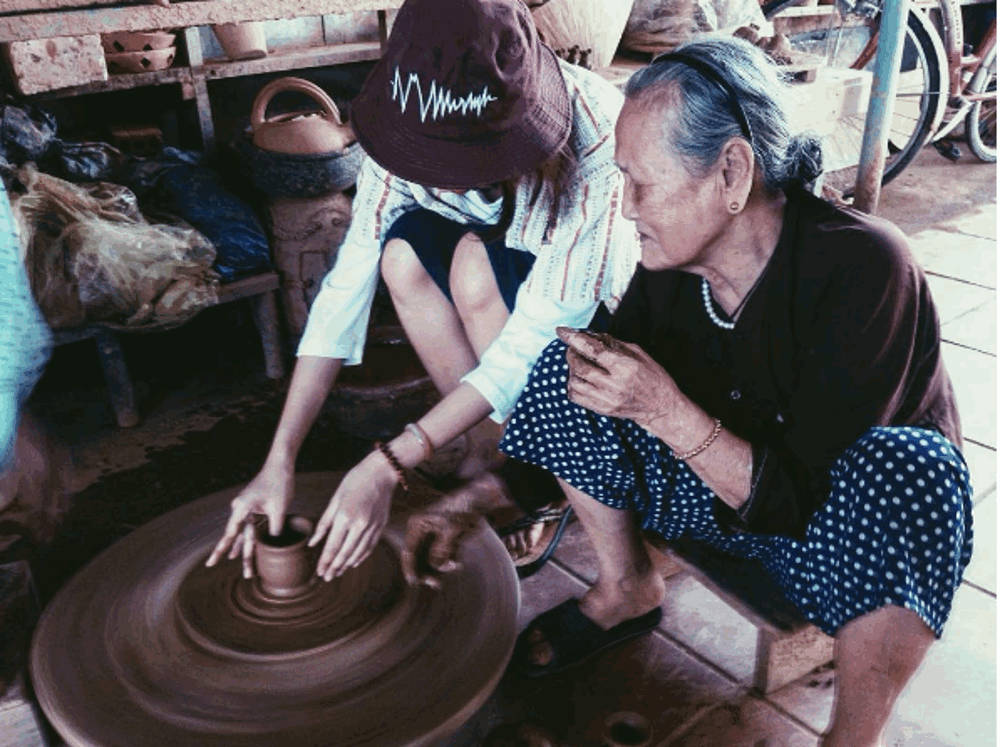 Đến với làng nghề, ngoài việc được chứng kiến tài hoa trong nghệ thuật chế tác của các nghệ nhân, du khách còn được hướng dẫn để tự tay thực hiện các sản phẩm thủ công truyền thống tại đây.