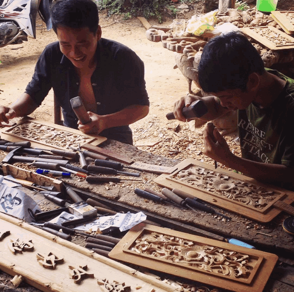 Để tới đây, du khách chỉ cần đi thuyền từ phố cổ trong khoảng 10 phút. Ngay từ khi đặt chân lên mảnh đất này, những âm thanh đục đẽo hay khoăn cắt đã khiến du khách rộn rạo về một điểm du lịch hấp dẫn. Các sản phẩm mộc tại làng nghề này được đánh giá nhẹ nhàng, mộc mạc nhưng không kém phần tinh xảo. Tại đây, du khách có thể tìm mua cho mình những bức hoành phi, tượng gỗ, ghế ngồi hay cả những món đồ chơi nhỏ độc đáo được đánh bóng nhẹ nhất để giữ màu sắc tự nhiên.
