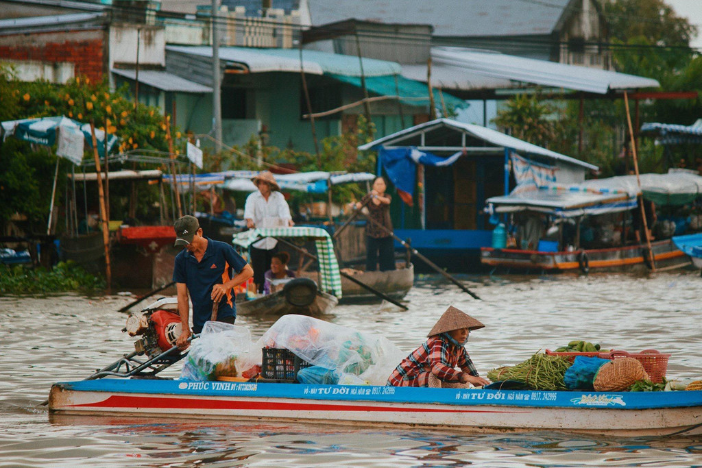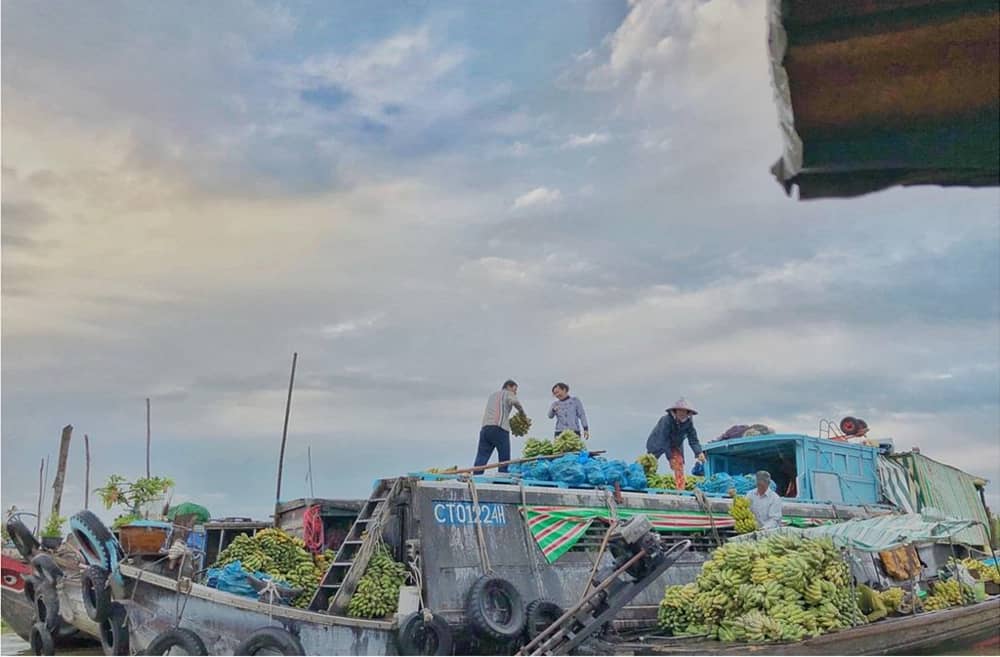 Ngoài thưởng thức các loại trái cây, check-in trên thuyền vào buổi sớm cũng là trải nghiệm nhiều du khách yêu thích khi ghé chợ nổi Cái Răng. Bạn nên đến chợ vào lúc 5h sáng, hòa mình với cuộc sống thường nhật của người miền Tây trên sông, nếm thử loạt món ăn vặt nổi tiếng và ghi lại những bức hình "sống ảo" nghìn like. Ảnh: nhonhonguyen226.