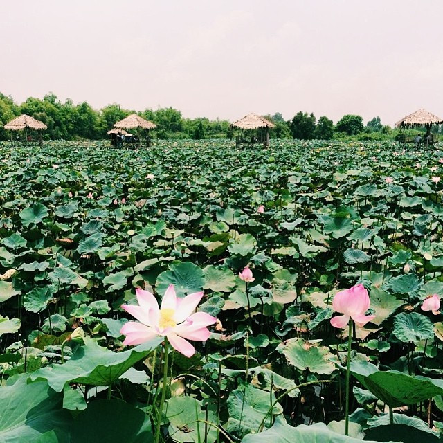 Đồng sen Tháp Mười: Địa danh sống ảo đẹp mê hồn này cách TP.HCM 130 km về phía Nam. Khu du lịch Đồng sen tại xã Mỹ Hòa, huyện Tháp Mười gây xao xuyến bởi vẻ đẹp của khung cảnh miền quê mộc mạc, yên bình. Bốn bề là đồng sen bát ngát tỏa hương ngào ngạt. Ảnh: @minh.0502. @trangta.