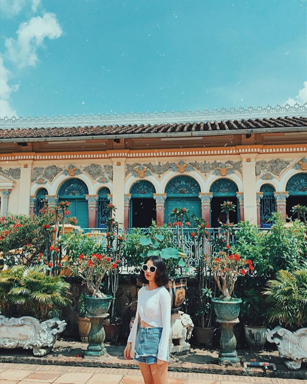 Xung quanh nhà cổ có khá nhiều cây xanh, tạo cho du khách cảm giác sống động và tươi mới hơn. Đứng ở khoảng sân rộng trước nhà, bạn sẽ cảm thấy thư thái khi ngắm nhìn nhiều loại cây cảnh như tùng, cau, sứ, bát tiên, thiết mộc lan. Ảnh: Rosenguyenn12, nancy.ngg98____.