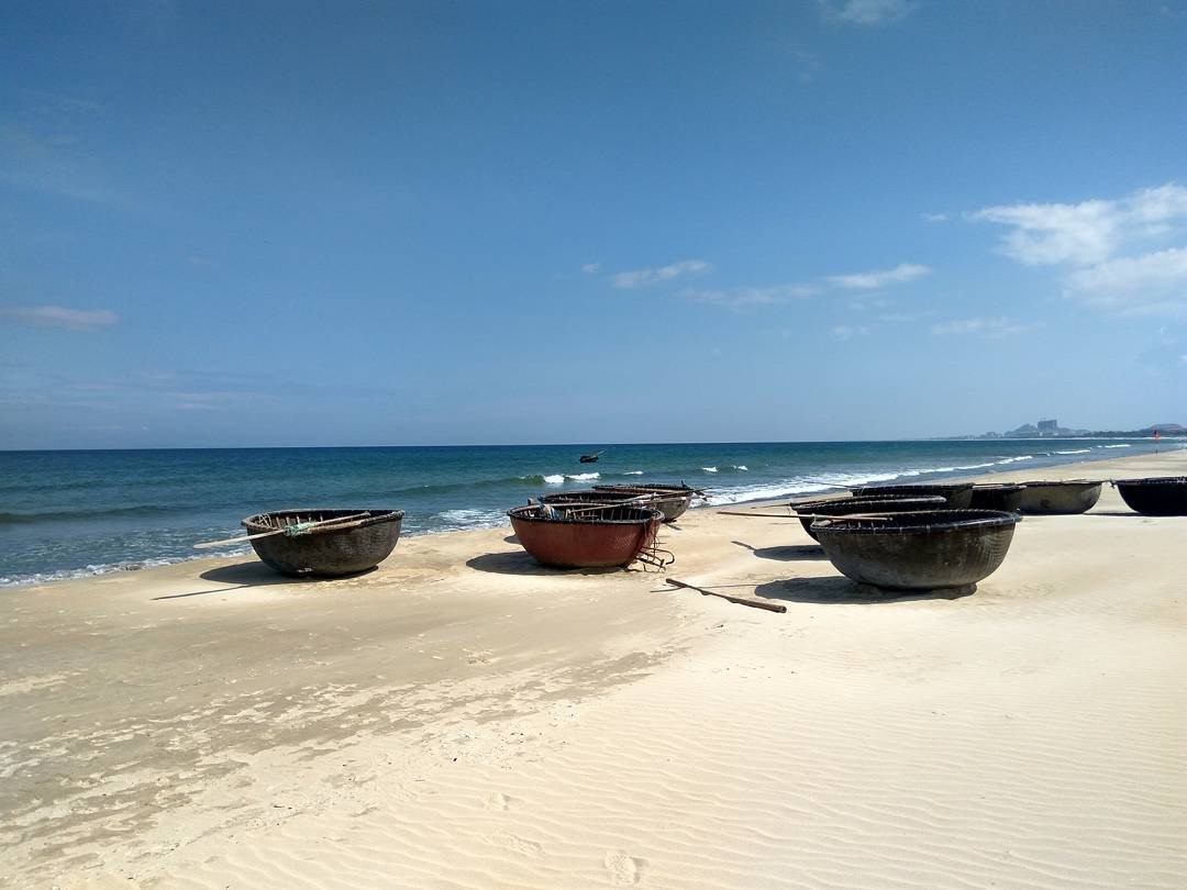 Thuyền thúng nằm im lìm trên bãi cát (ảnh @ahpang82)