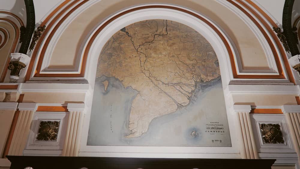Phía bên phải tiền sảnh là tấm bản đồ mang tên "Saigon et ses environs 1892" thể hiện địa lý Sài Gòn và vùng xung quanh.