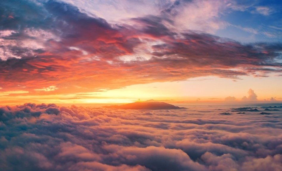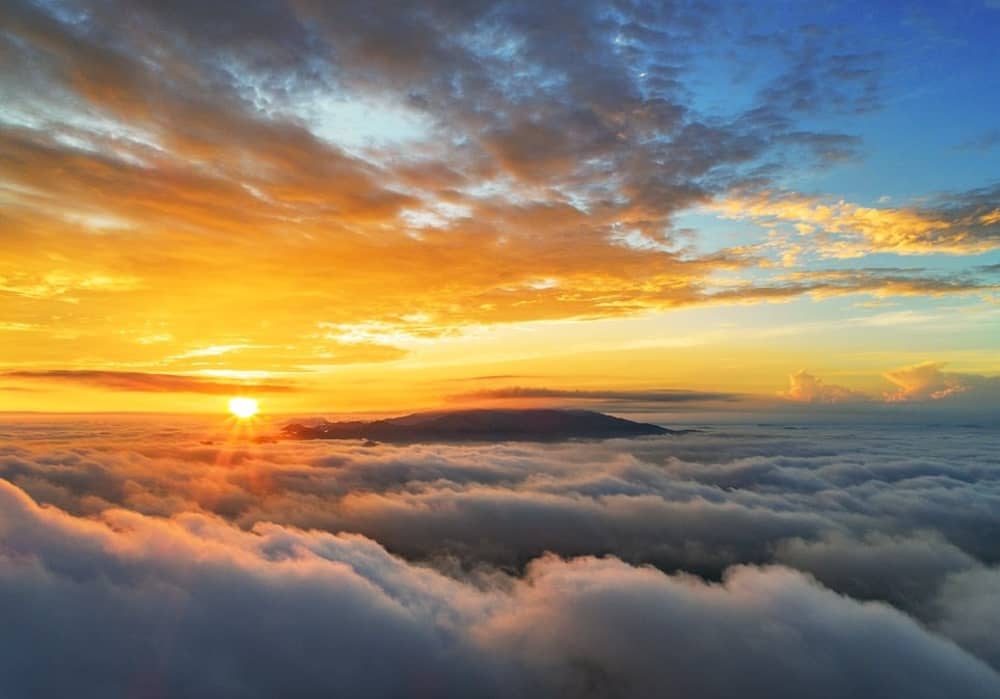 Khung cảnh biển mây trắng xóa, che phủ tầm nhìn phía dưới chân núi, đẹp như bức tranh tuyệt tác thơ mộng. Vẻ đẹp ấy gợi liên tưởng tới khoảnh khắc sương mù giăng kín Đà Lạt khi đêm xuống hay lúc Mặt Trời lên. Không ít du khách, nhiếp ảnh gia đã cất công đến đây, leo lên ngọn núi cao nhất để tìm kiếm những tác phẩm để đời.
