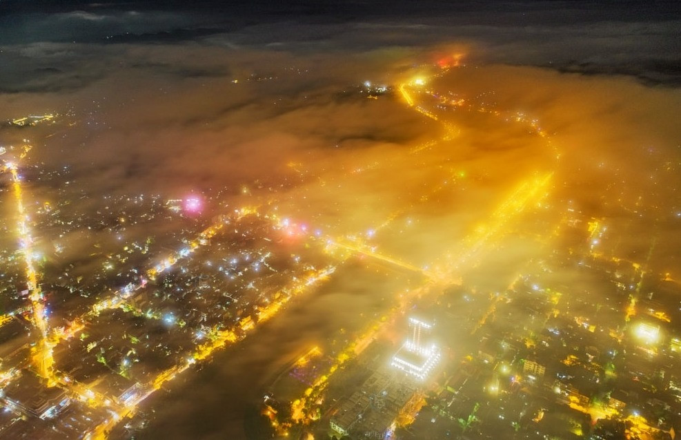 Những ngày trời trở lạnh, xứ Lạng về đêm cũng làm nức lòng người đam mê nhiếp ảnh. Màn mây mỏng tang sà xuống, không làm che khuất tầm nhìn thành phố lên đèn sầm uất, náo nhiệt bên dưới. Ánh đèn muôn màu chiếu sáng mọi ngõ ngách thoắt ẩn thoắt hiện dưới lớp sương khiến khung cảnh thêm phần huyền ảo, lung linh, ngỡ như đang đứng ở ngọn đồi cao nhìn xuống phố đêm Đà Lạt.