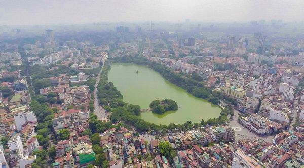 Trung tâm Hà Nội ngày xưa và ngày nay nhìn từ trên cao.