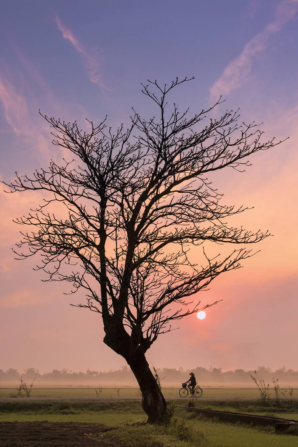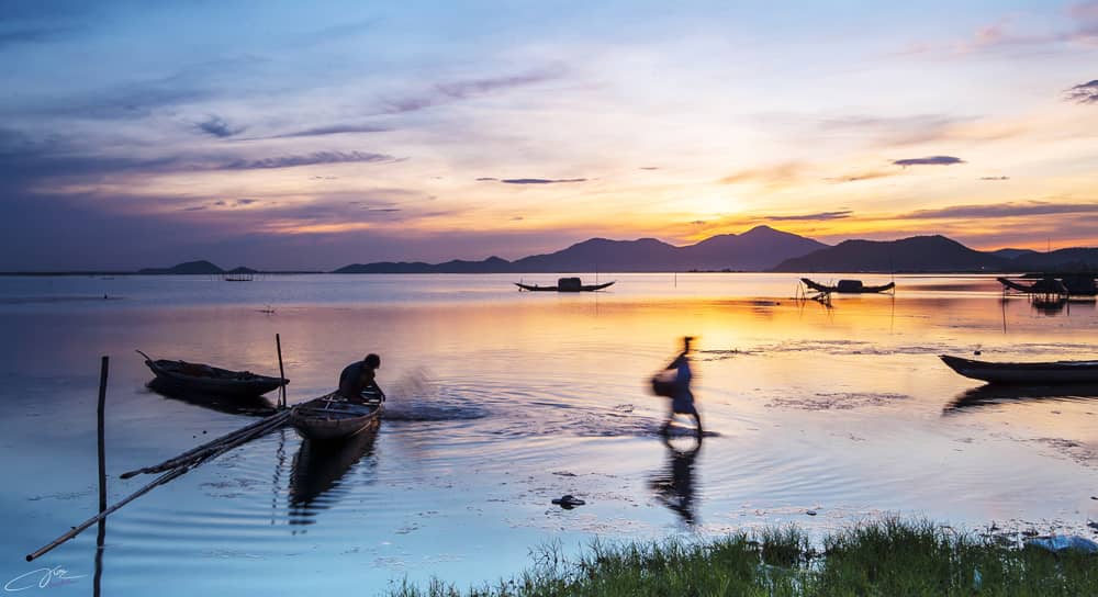 Khác với Hà Nội, Sài Gòn đầy sôi động và náo nhiệt, xứ Huế mộng mơ có nhịp sống tĩnh lặng và trầm mặc. Với nhiều di sản, đền đài và hoàng thành cổ kính, nơi đây ẩn chứa nhiều giá trị văn hóa cần được khám phá, bảo tồn và phát triển. Sinh ra và lớn lên ở Huế, tay máy Lê Huy Hoàng Hải đã có một tuổi thơ đầy yên ả, chứng kiến nhiều đổi thay trên quê hương mình. Với niềm đam mê nhiếp ảnh, anh đã rong ruổi trên mọi nẻo đường để lưu giữ những khoảnh khắc đời thường đầy dung dị. Khi là những buổi sáng mờ sương trên cầu Trường Tiền, cây cầu hơn 100 năm tuổi được người Pháp xây dựng ở Đông Dương, lúc lại là những bước chân tất tả mưu sinh của người dân lao động. Để chụp được bức Bình minh đầm Quảng Lợi, tác giả đã ra khỏi nhà lúc 3h để chạy đến điểm chụp đúng thời điểm Mặt Trời mọc. Không chỉ một mà rất nhiều lần anh phải tốn nhiều công sức để săn được khoảnh khắc tuyêt đẹp của thiên nhiên. Ngoài ra, Hoàng Hải còn chụp được rất nhiều bức ảnh độc đáo về đền đài, lăng tẩm của các vị vua chúa, những trầm tích rêu phong phía sau ánh hoàng hôn kinh kỳ Đại Nội. Qua cuộc triển lãm ảnh cá nhân mang tên Xứ mộng mơ diễn ra từ 16/11-14/12 tại Viện Pháp tại Huế, Lê Huy Hoàng Hải muốn kể một câu chuyện đầy chân thực như mời gọi: “Hãy một lần đến Huế, ngồi bên dòng sông Hương, ngắm nhìn những tà áo dài trắng của các nữ sinh Đồng Khánh, lắng nghe tiếng chuông chùa Thiên Mụ ngân từng hồi thánh thót, bạn sẽ yêu thành phố này tự lúc nào”. Dưới đây là một số tác phẩm tại triển lãm.
